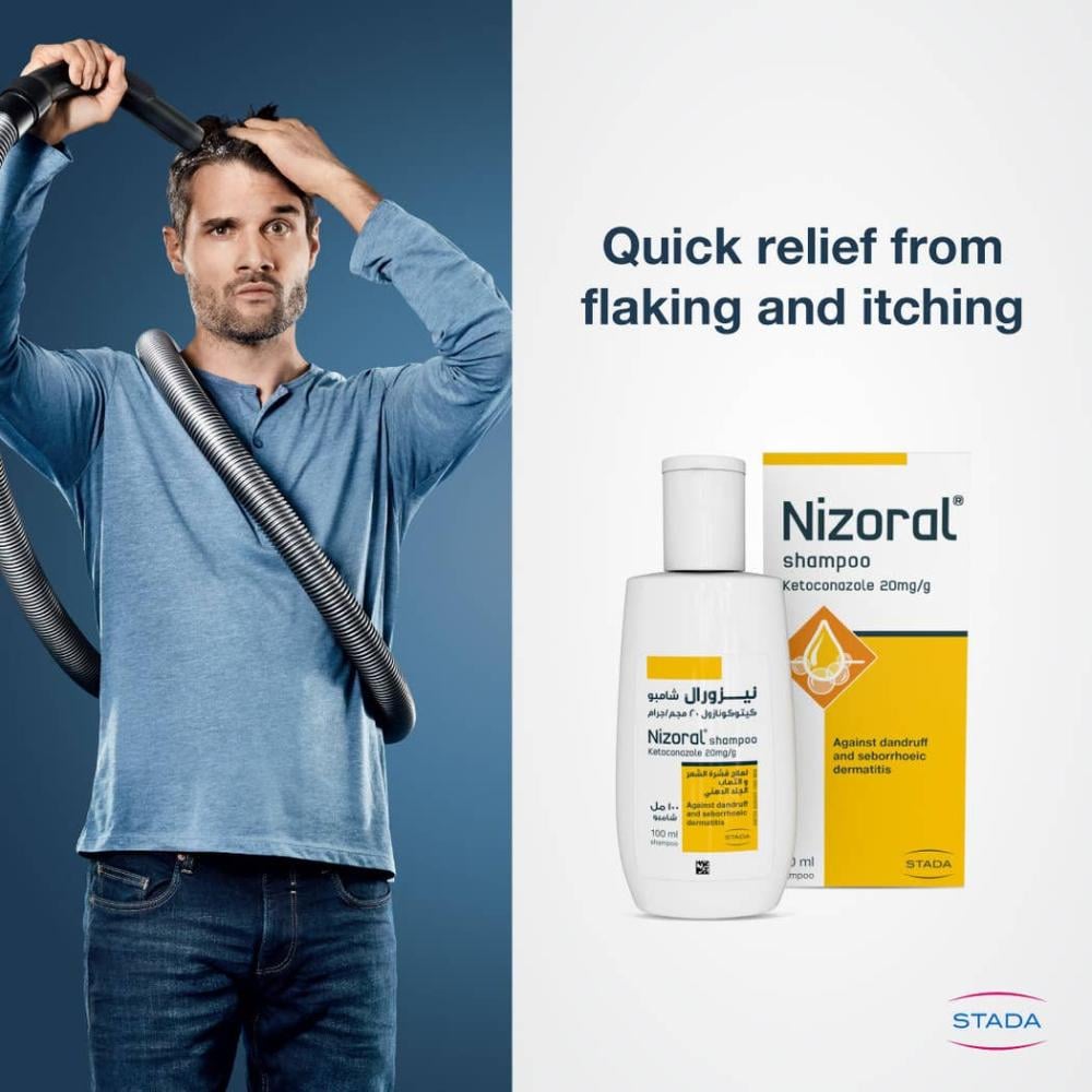 نيزورال شامبو للقشرة - 100 مل يحتوي على 2% كيتوكونازول، عامل مضاد للفطريات، ويعد خيارًا ممتازًا كشامبو للقشرة للبشرة الحساسة حيث يخفف من التهيج ويحافظ على نظافة فروة الرأس.