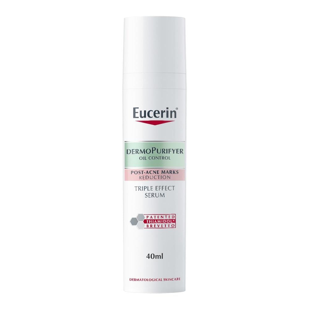 يمكّنك المصل Eucerin DermoPure Triple Effect Serum مع Thiamidol الحاصل على براءة اختراع من التغلب أخيرًا على الشوائب وعلامات ما بعد حب الشباب بثلاثة عوامل رئيسية: